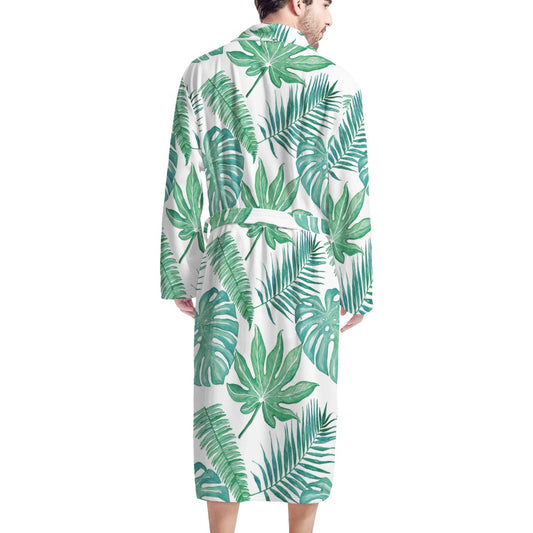 Palm and Monstera Leaf Green Men's Bathrobe