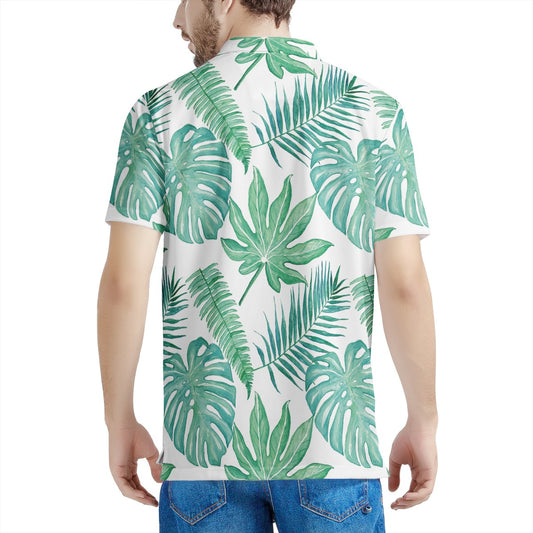 Palm and Monstera Leaf Green Men's Aloha Polo Shirt