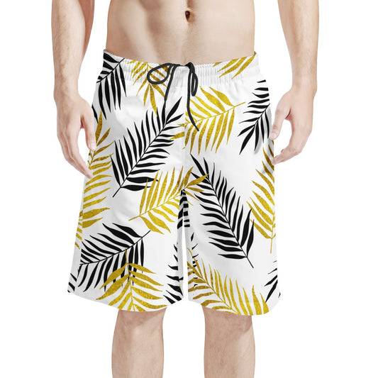 Men's All Over Board Shorts - Black and Gold Palm Branches