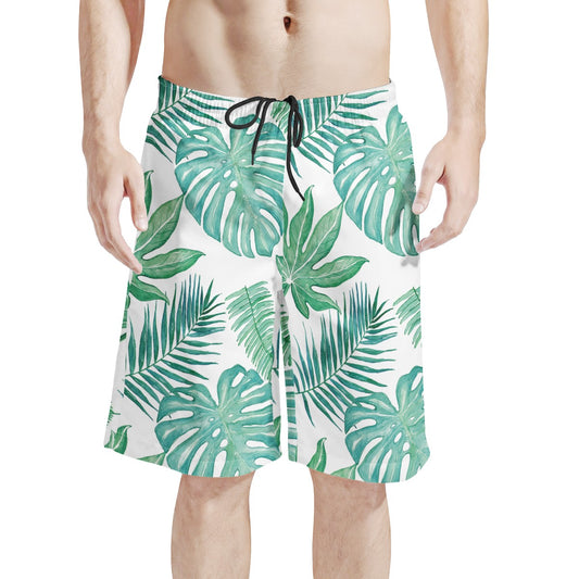 Men's All Over Board Shorts - Palm and Monstera Leaf Green