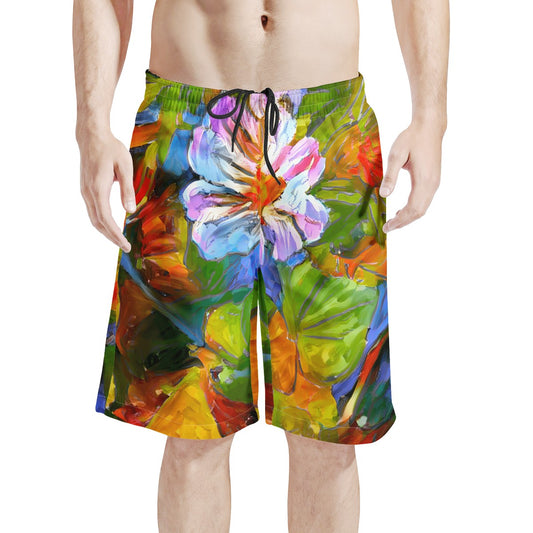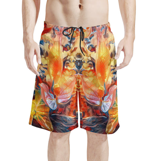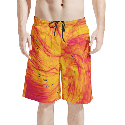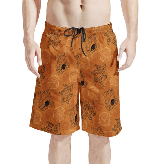 Men's All Over Board Shorts - Sea Shell Ocean Design in Orange