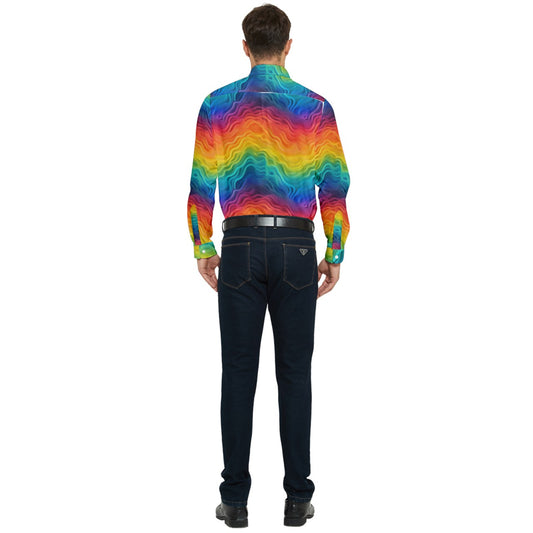 LGBTQ Rainbow Men's Long Sleeve Pocket Shirt