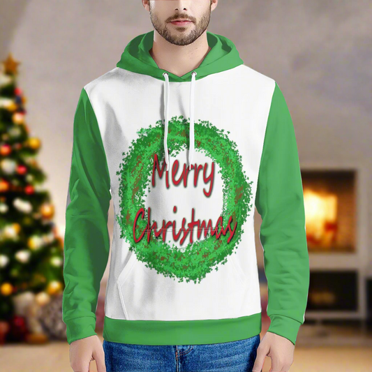 Men's Green Christmas Hoodie | Soft All-Over Print | Festive & Eco-Friendly Holiday Wear