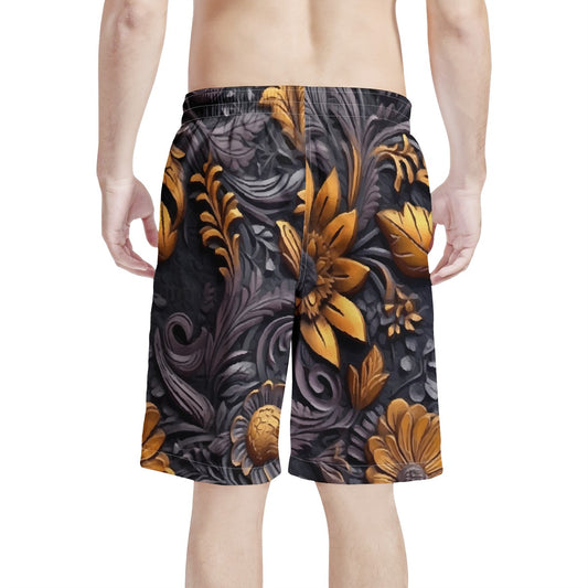Gold Flowers Woodcut Men's All Over Print Board Shorts