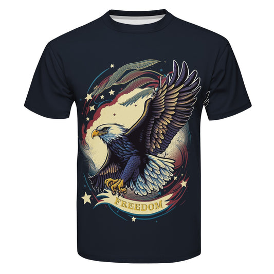 Freedom Flyer: Celebrating the Bald Eagle as a Symbol of Freedom and Strength in the USA Men's All Over Print Basic Tee