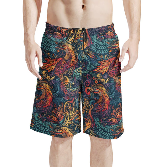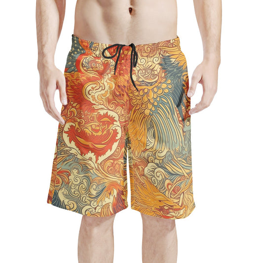 Experience the magic of ancient Chinese mythology with our exquisite Dragon and Phoenix Men's All Over Print Board Shorts