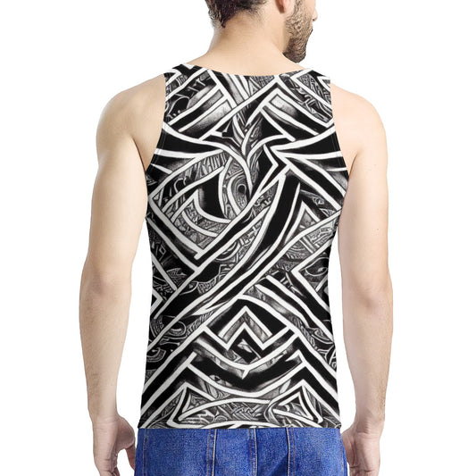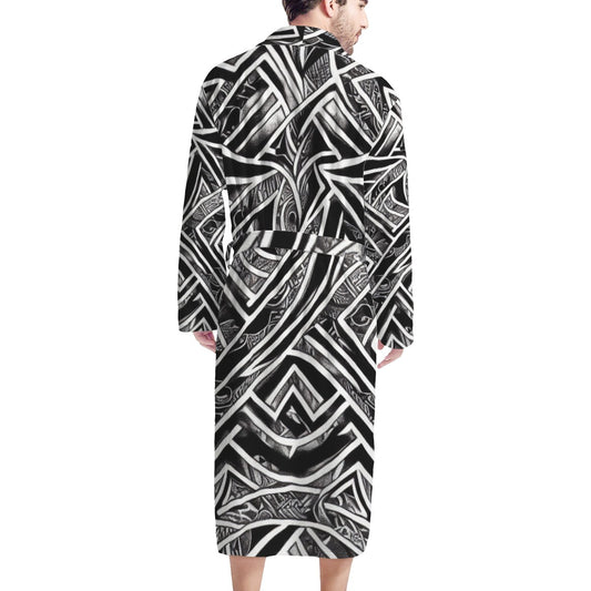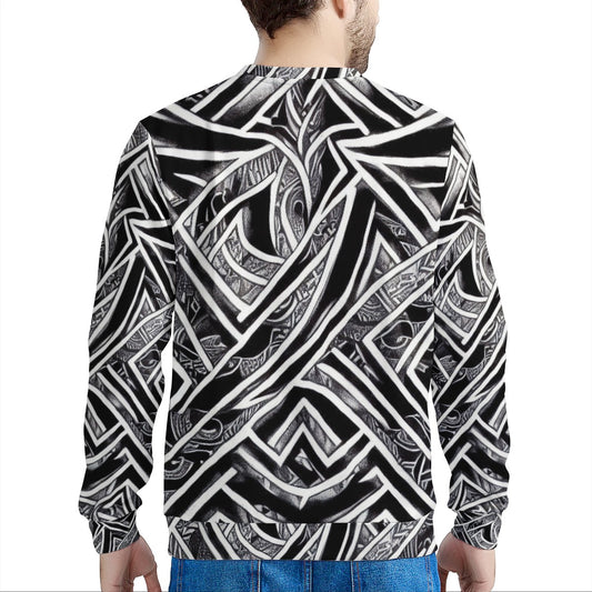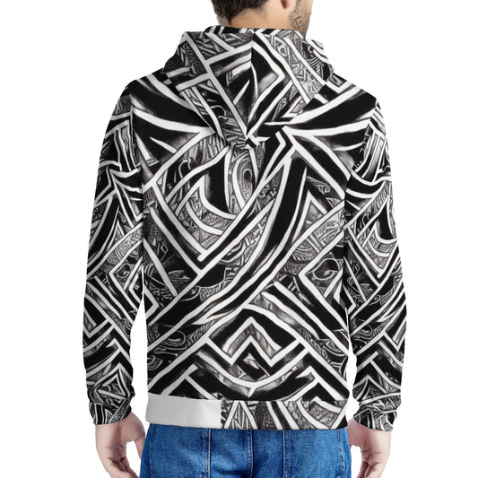 Black and White Polynesian Men's All Over Print Zip Hoodie
