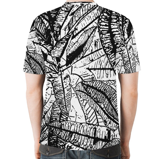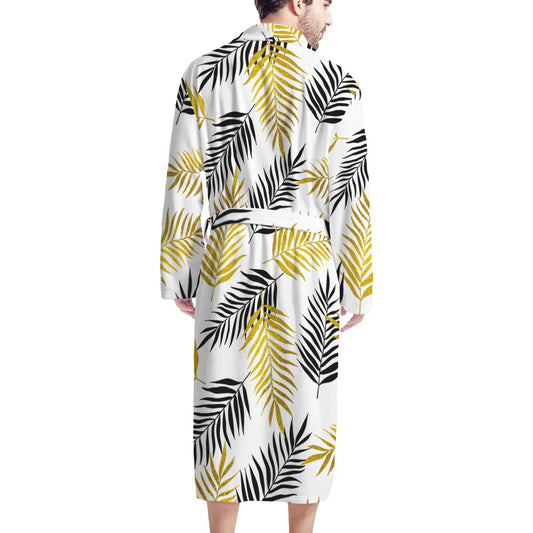 Black and Gold Palm Branches Men's Aloha Polo Shirt