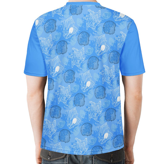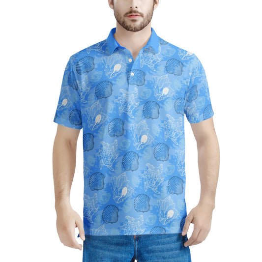 Blue Seashell Ocean Men's Aloha Polo Shirt