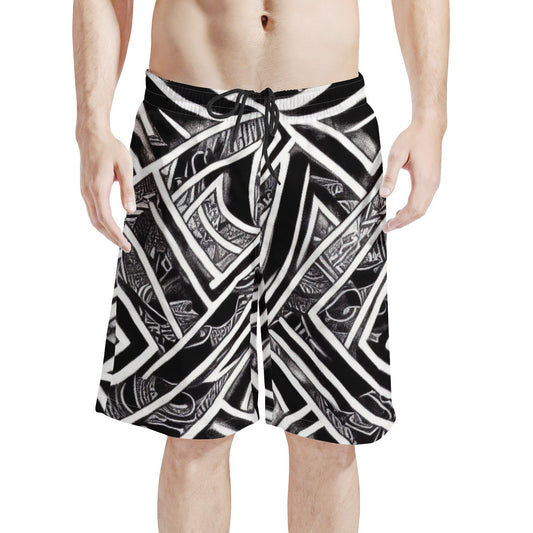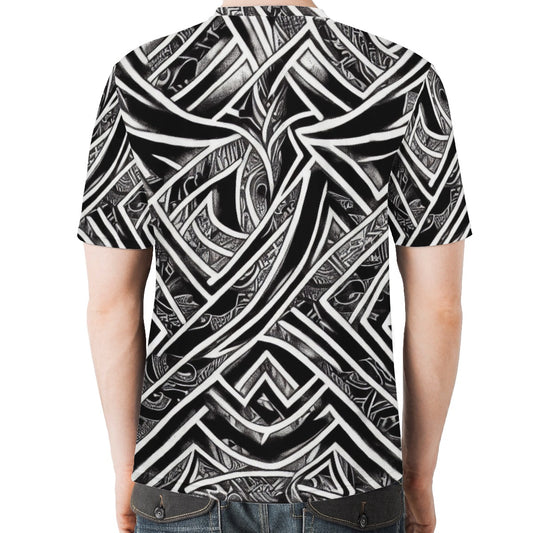 Black and White Polynesian Men's All Over Print Polo Shirt