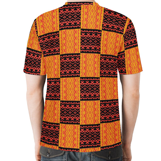 Black and Orange Tribal Design - Men's Aloha Polo Shirt