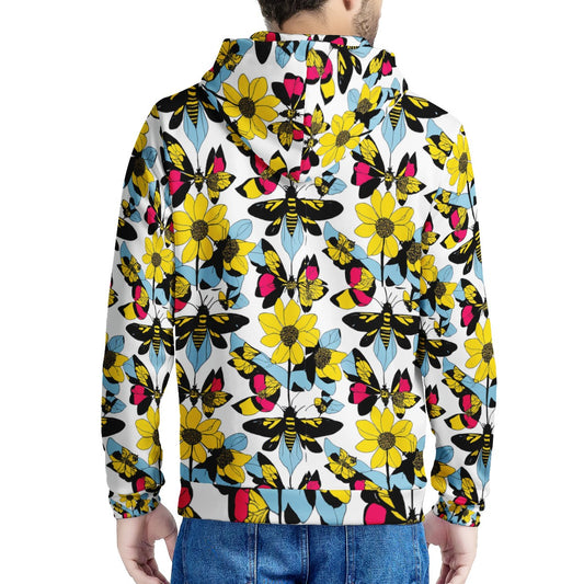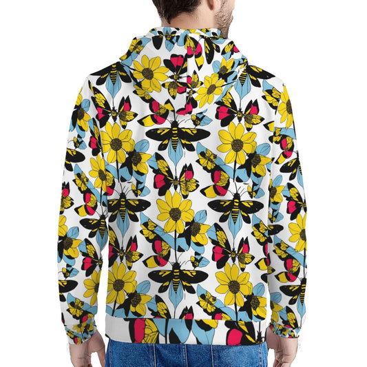 Bees and Sunflowers Men's All Over Print Zip Hoodie