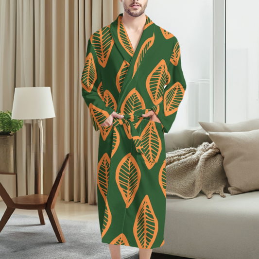 African | Ethnic | Mudcloth | #16 Green and Orange Men's Bathrobe