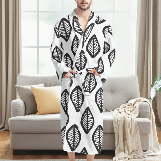 African | Ethnic | Mudcloth | #16 Black and White Men's Bathrobe