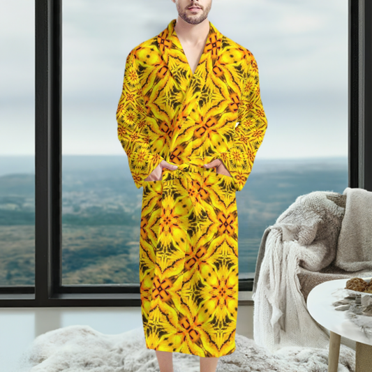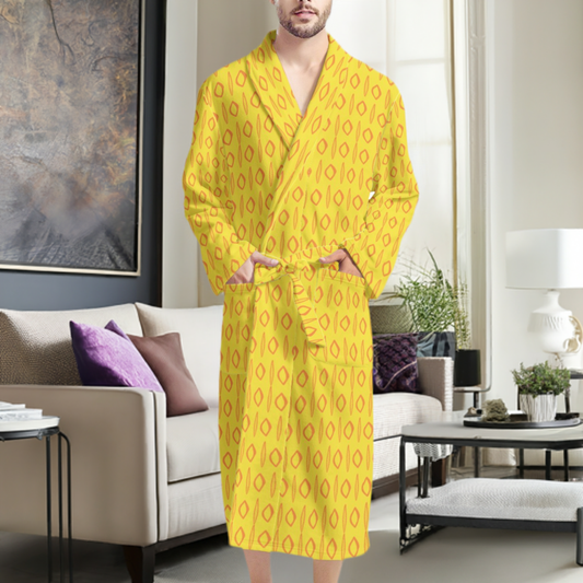 African Ethnic Mudcloth #14 Yellow Men's Bathrobe