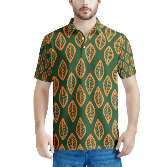 African | Ethnic | Mudcloth | #16 Green and Orange Men's Aloha Polo Shirt
