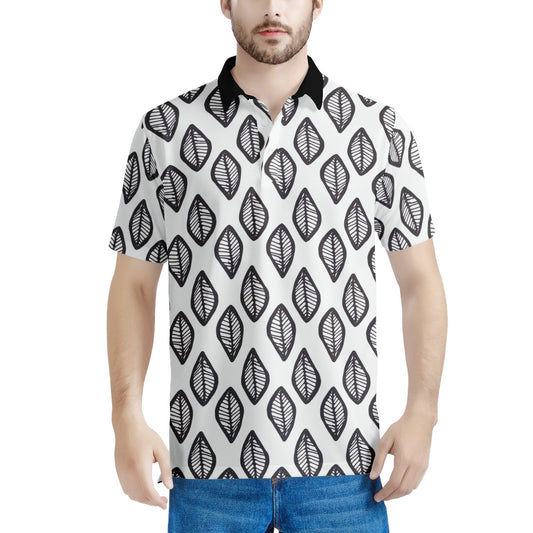 African | Ethnic | Mudcloth | #16 Black and White Men's Aloha Polo Shirt