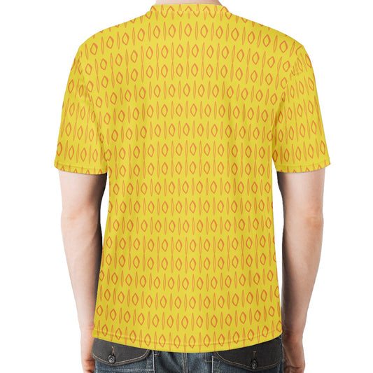 African | Ethnic | Mudcloth | #14 Yellow Men's Aloha Polo Shirt