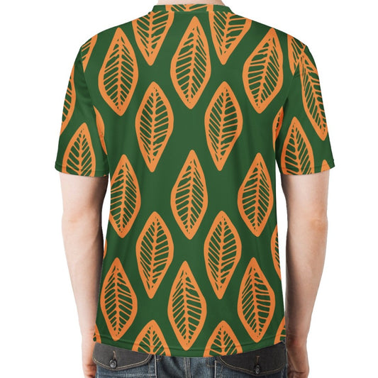 African | Ethnic | Mudcloth | #16 Green and Orange Men's Basic Tee