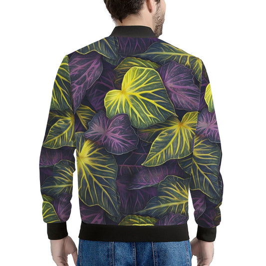 Luxtrini Iridescent Syngonium: Purple and Yellow Men's Bomber Jacket
