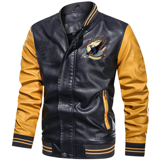 Make a statement with the Freedom Flyer Leather Bomber Jacket! up to 5XL