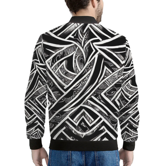 Black and White Polynesian Men's Bomber Jacket