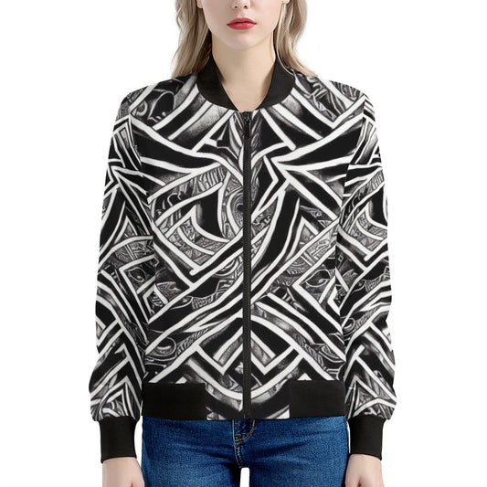 African Ethnic Mudcloth Black Women's Bomber Jacket