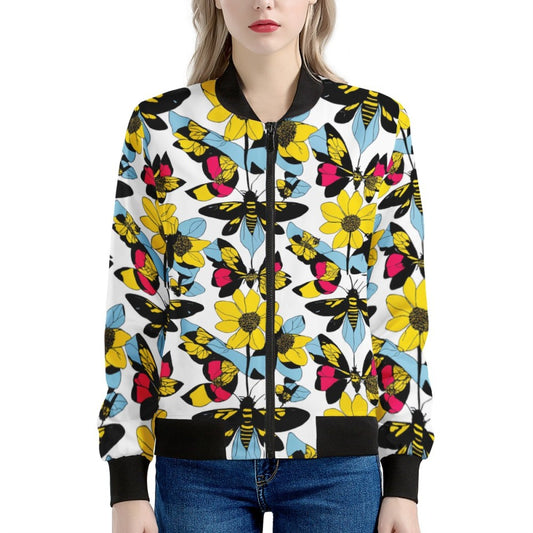 Luxtrini Bees and Sunflowers Women's Bomber Jacket