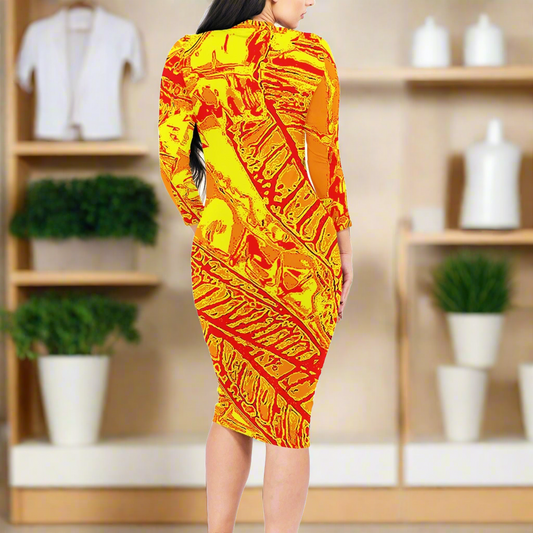Orange Croton Women Bodycon Midi Sheath Dress - up to 4XL