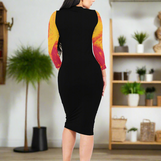 Our Exquisite Dragon and Phoenix Women Bodycon Midi Sheath Dress