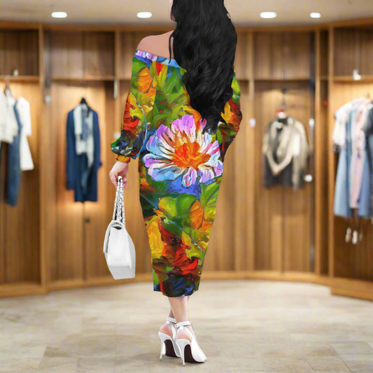 Petunia Flower Women Long Sleeve Off Shoulder Midi Dress