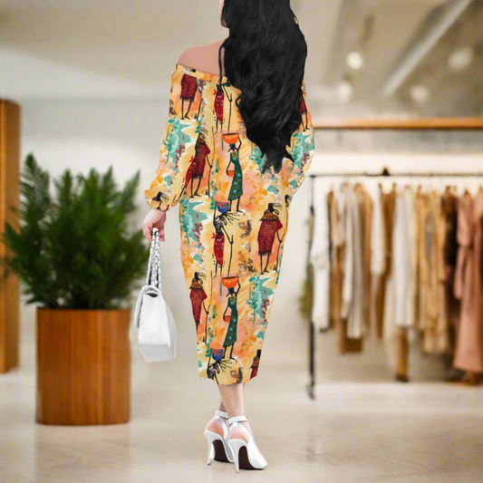Tribal Women Long Sleeve Off Shoulder Midi Dress