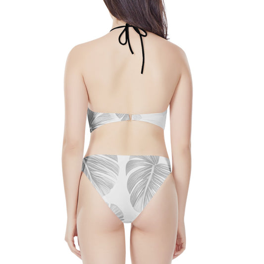 White Monstera New Women's High Neck Bikinis Swimsuit