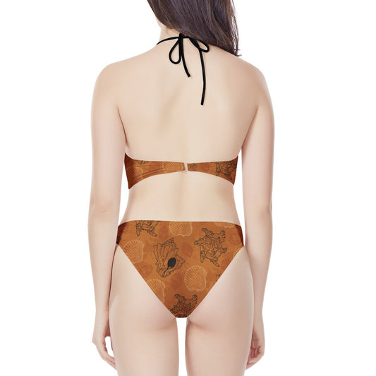 Seashell Ocean in Orange New Women's High Neck Bikinis Swimsuit