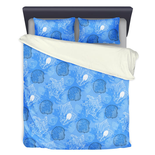 Blue Seashell Ocean - Duvet Cover - 3 Piece Bedding Set - Pillow Cases