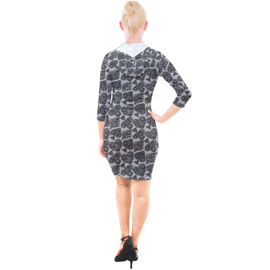 Playing Cards Gray Quarter Sleeve Hood Bodycon Dress