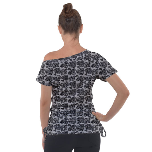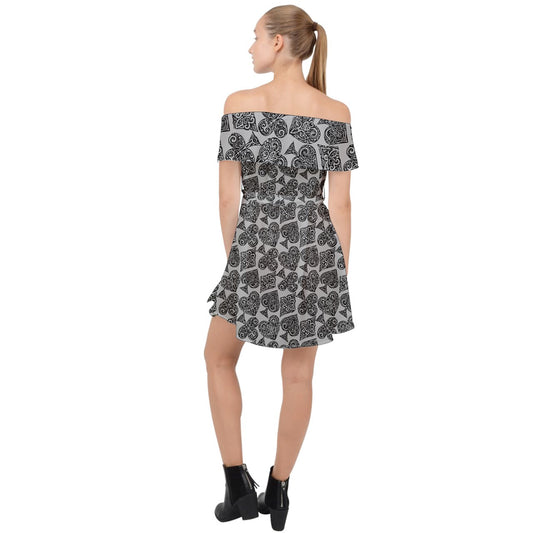 Playing Cards Gray Off Shoulder Chiffon Dress