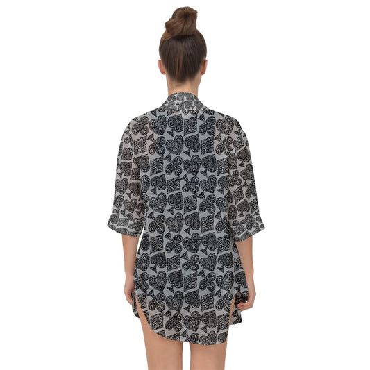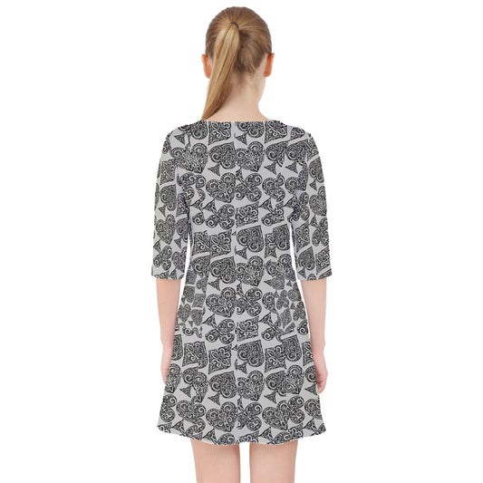 Playing Cards Gray Quarter Sleeve Pocket Dress