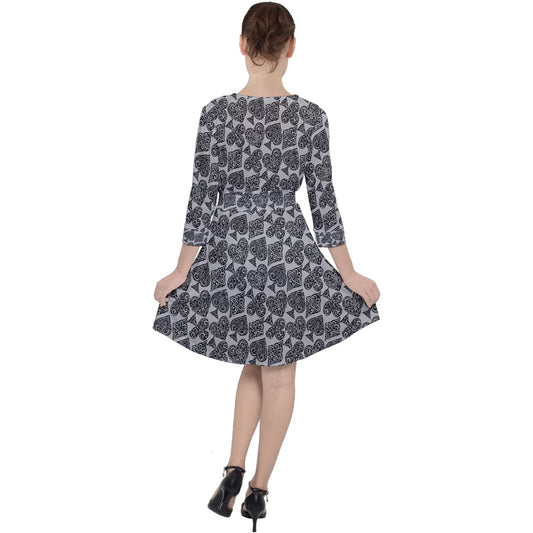 Playing Cards Gray Quarter Sleeve Ruffle Waist Dress