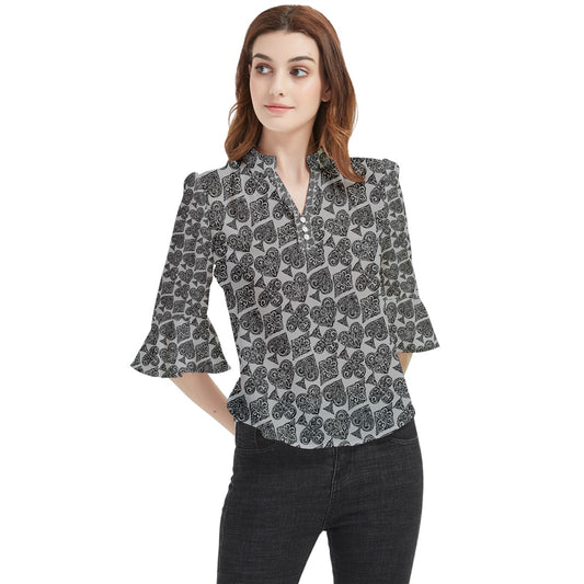 Playing Cards Gray | Loose Horn Sleeve Chiffon Blouse