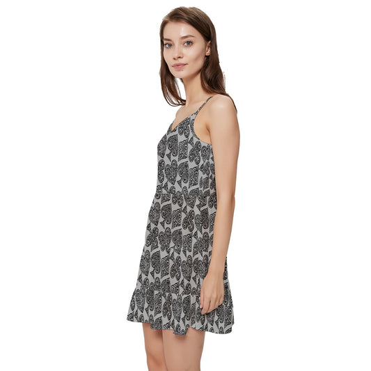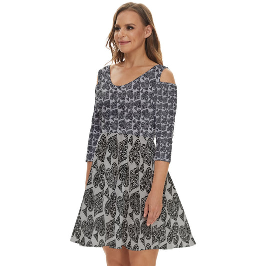 Playing Cards Gray | Shoulder Cut Out Zip Up Dress