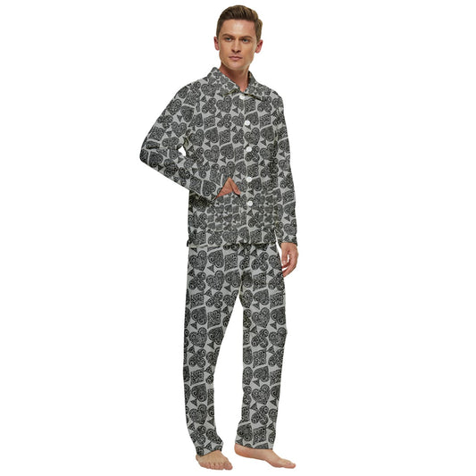 Playing Cards Gray | Men's Long Sleeve Velvet Pocket Pajamas Set