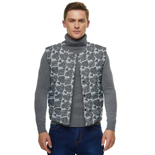 Playing Cards Gray | Men's Short Button Up Puffer Vest