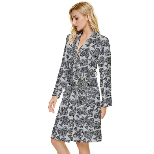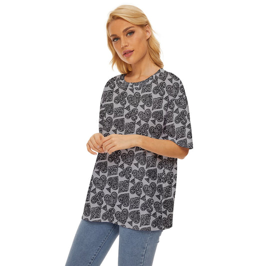 Playing Cards Gray | Long Sleeve DeepV Velour Top
