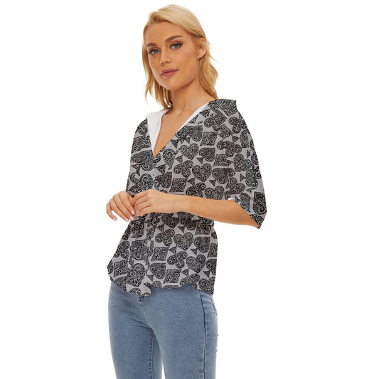 Playing Cards Gray | Off Shoulder Chiffon Pocket Shirt