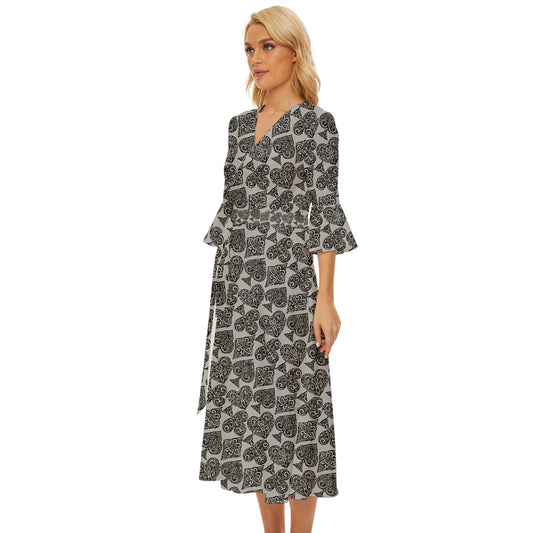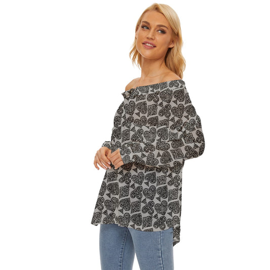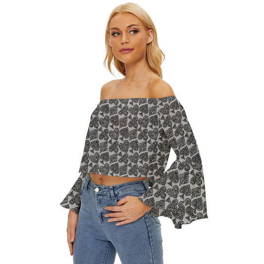 Playing Cards Gray | Off Shoulder Flutter Bell Sleeve Top
