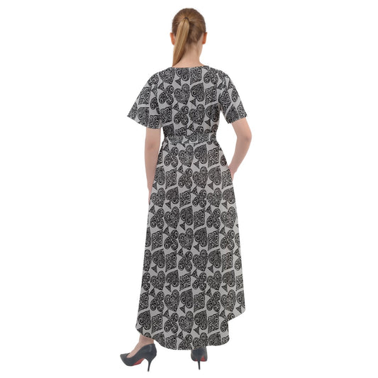 Playing Cards Gray | Cross Front Sharkbite Hem Maxi Dress
