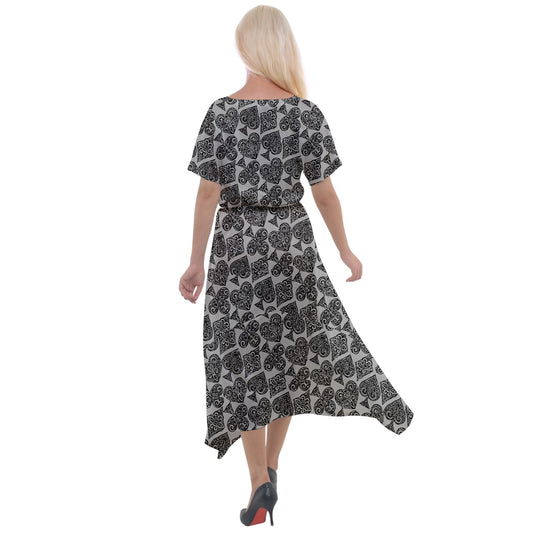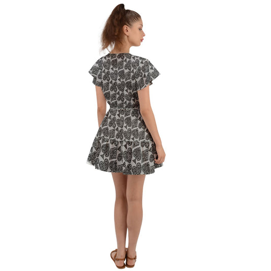 Playing Cards Gray | Flutter Sleeve Wrap Dress