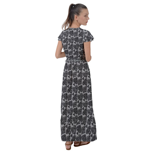Playing Cards Gray | Flutter Sleeve Maxi Dress