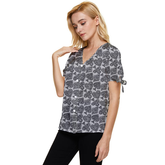 Playing Cards Gray | Bow Sleeve Button Up Top